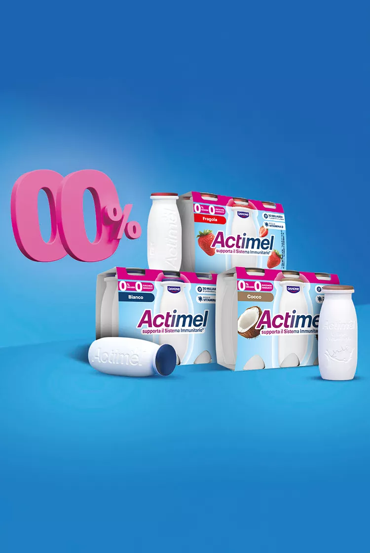 Actimel 0% è la scelta perfetta per chi vuole godersi il gusto di Actimel di sempre, ma in tutta leggerezza. *Contiene naturalmente zuccheri
