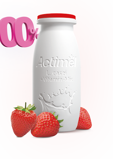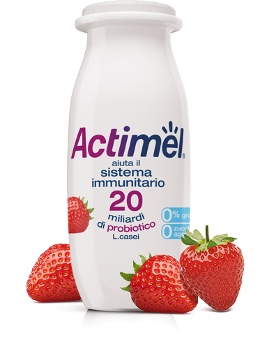 Bevanda a base di latte scremato fermentato con Lactobacillus casei, Streptococcus thermophilus e Lactobacillus bulgaricus, e preparato alla fragola, dolcificata con zucchero ed edulcoranti ed arricchita con calcio e vitamine D e B6. Latte scremato, acqua, purea di fragole 2%, addensanti: amido modificato, pectina, sali minerali del latte, aromi naturali, correttori di acidità: citrato di sodio, acido citrico; edulcoranti: sucralosio, acesulfame K; probiotico: L.casei (Lactobacillus paracasei subsp. paracase CNCM I-3689), fermenti lattici: S.thermophilus, L.bulgaricus; vitamine D3 e B6. Senza conservanti e senza coloranti artificiali.